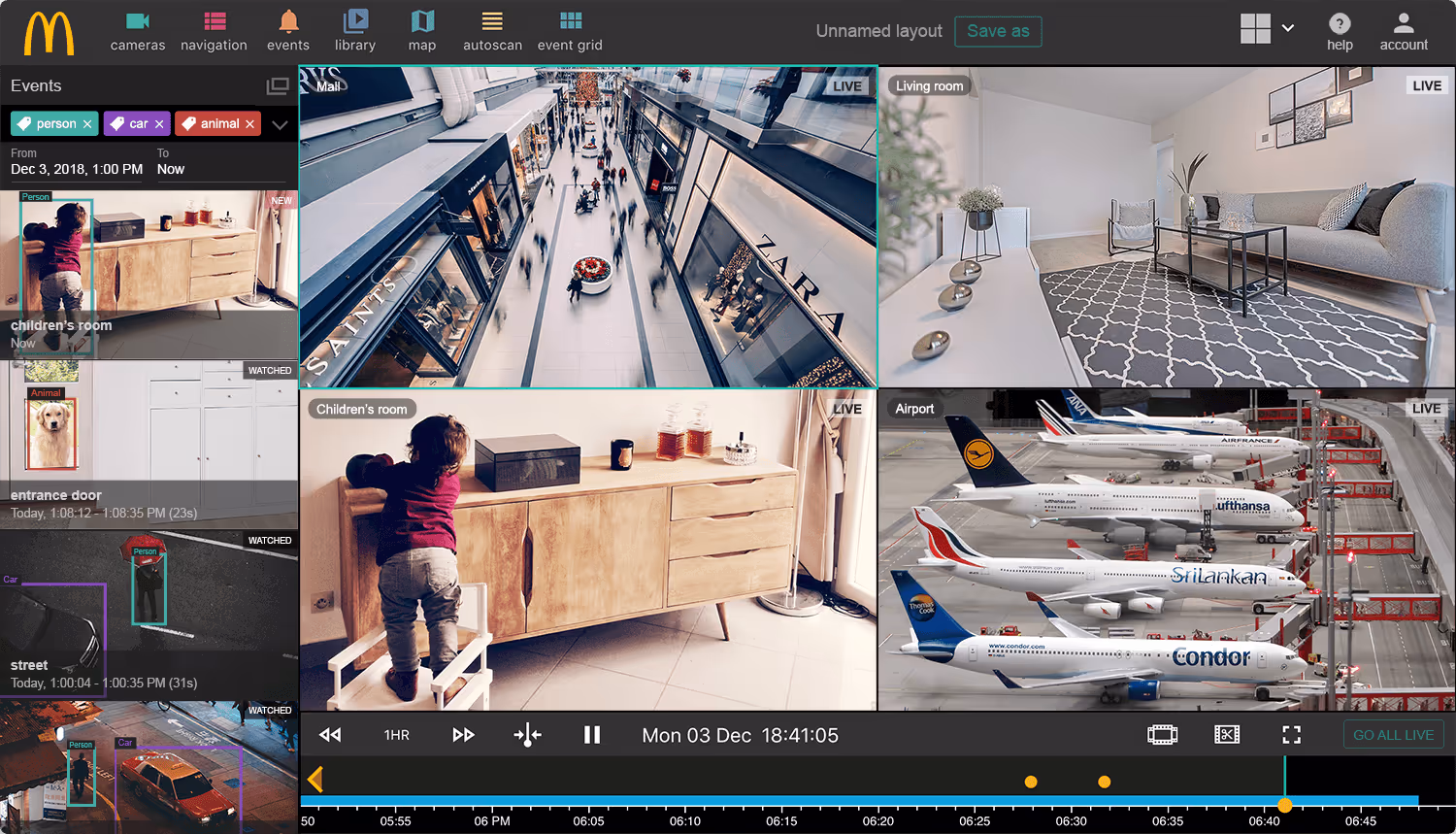 Cameras were set up with motion alerts outside of business hours to capture unauthorized / suspicious activity. The schedule, user permissions and all management options became customizable through the administration portal, giving McDonald’s full remote control of their security. The cloud solution provided McDonald’s with secure, offsite, redundant storage through Amazon S3 servers. Events are now generated on a trigger basis with email alerts and License Plate Number has also been incorporated. 3dEYE is highly scalable and will easily adapt to the growing franchise’s needs in additional locations.